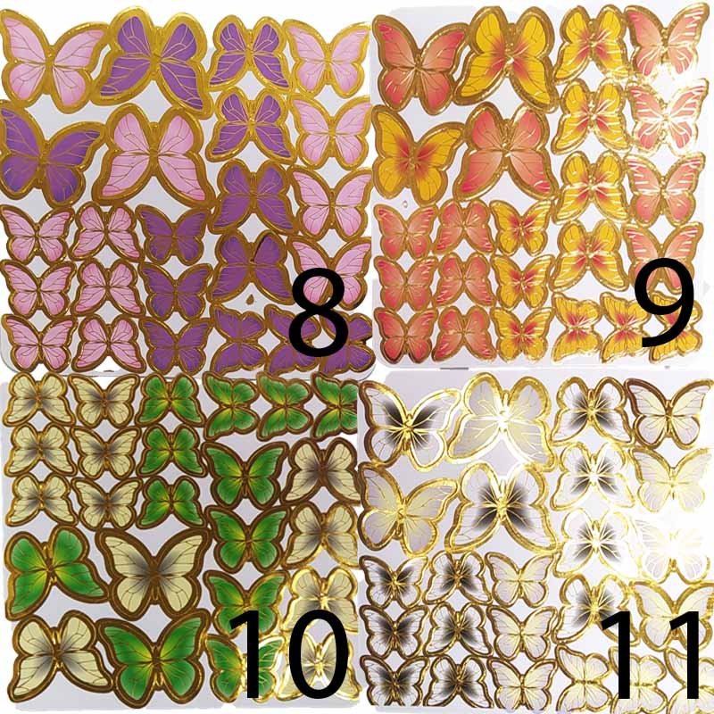 هر برگه شامل 4 پروانه بزرگ 8 پروانه متوسط و 12 پروانه کوچک