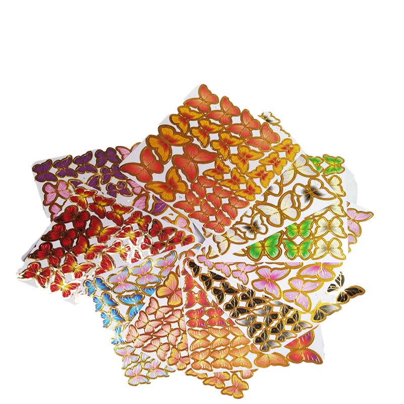 قیمت به ازای هر برگه ذکر شده است که شامل 24 عدد استیکر پروانه در ابعاد متفاوت است
